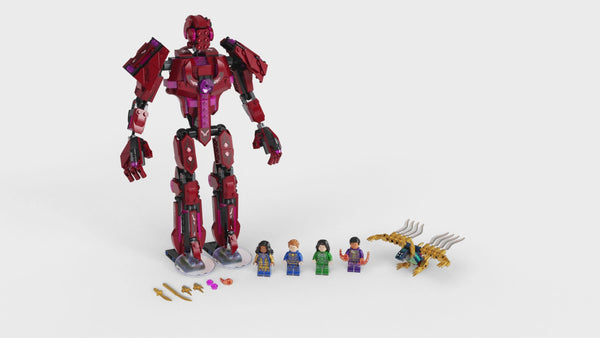 - Includes 4 Eternals superhero minifigures – Ikaris, Sersi and exclusive Ajak and Kingo – a Deviant figure, a posable Celestial with a light-up chest, 2 daggers, 1 sword, 2 mini shooters and a blade.