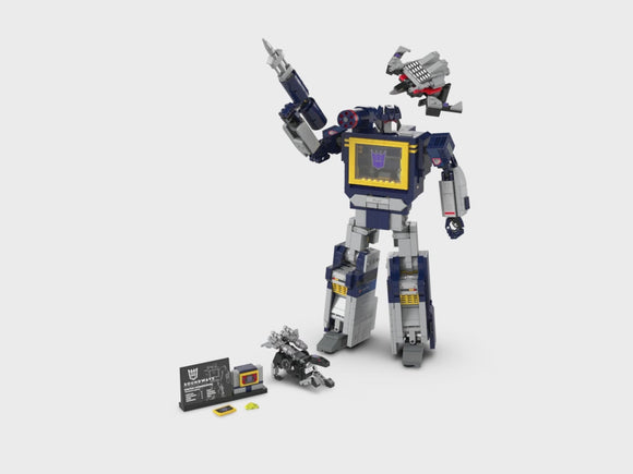 - What’s in the box? – Everything you need to craft a detailed LEGO® Icons Transformers: Soundwave figure with rocket pod, laser blaster and dart accessories, plus Ravage and Laserbeak figures