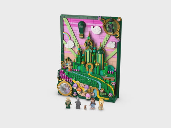 • 7 characters and minifigures – LEGO® artwork features Elphaba flying over Emerald City and Glinda floating in her bubble, as well as Dorothy Gale, Cowardly Lion, Scarecrow, Tin Man and Toto