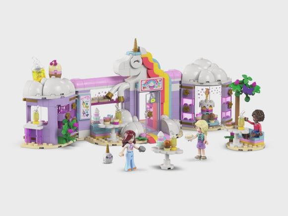 - RAINBOW UNICORN CAFÉ PLAYSET – Kids ages 6 and up can play pretend as café owners with this detailed LEGO® Friends Unicorn Dream Café set (42684) including 3 minidolls and toy cakes for imaginative play