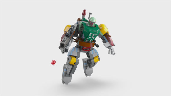 - A Boba Fett LEGO® minifigure – Boba Fett comes with a blaster rifle and jetpack accessory element. The blaster rifle can be clipped to the mech, and Boba can wear the jetpack in the cockpit