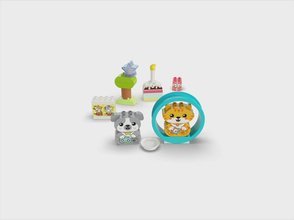 Children aged 18 months and over can have lots of fun as they learn and build skills with LEGO® DUPLO® My First Puppy & Kitten With Sounds (10977).