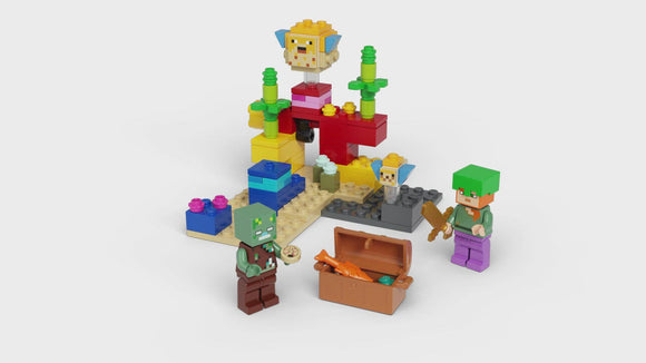 • LEGO® Minecraft™ The Coral Reef (21164) is a hands-on treat for Minecraft players that brings the game’s underwater adventures to life with endlessly reconfigurable LEGO bricks.