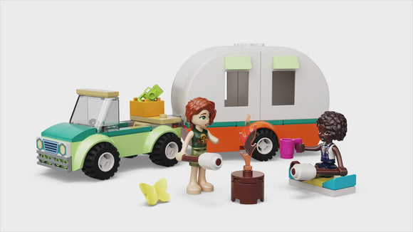 Ready to go camping with Autumn and Aliya? Drive the car to seek out the perfect camping spot in Heartlake City forest. Capture a picture of a rare butterfly with the toy camera. Organise the caravan ready for evening. Enjoy toasting marshmallows on the campfire. Then settle into the caravan for a cosy sleep.
