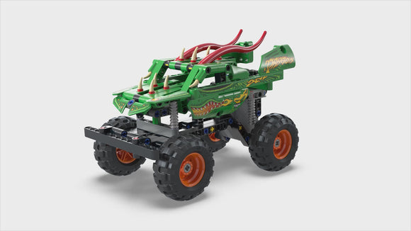 Think you can handle the heat of Monster Jam™? It’s time to put your skills to the test with the LEGO® Technic Monster Jam Dragon™ set. Build the truck, with its fierce dragon spikes, horns and fiery details. Then pull back the motor to send it speeding along – or perform cool tricks like a real competitor! When it’s time for something new, rebuild the truck into a Crocodile Monster Truck.