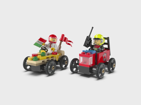 Treat your race fan to the LEGO® City Pizza vs. Fire Truck Race Car Pack (60458) for kids aged 5 and over. This fun racing set features 2 soapbox race cars and 2 minifigures. Kids can pit the chef in the sizzling pizza slice against the firefighter in the red-hot fire truck. Who’ll win? Take your seat for epic urban race action!
