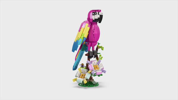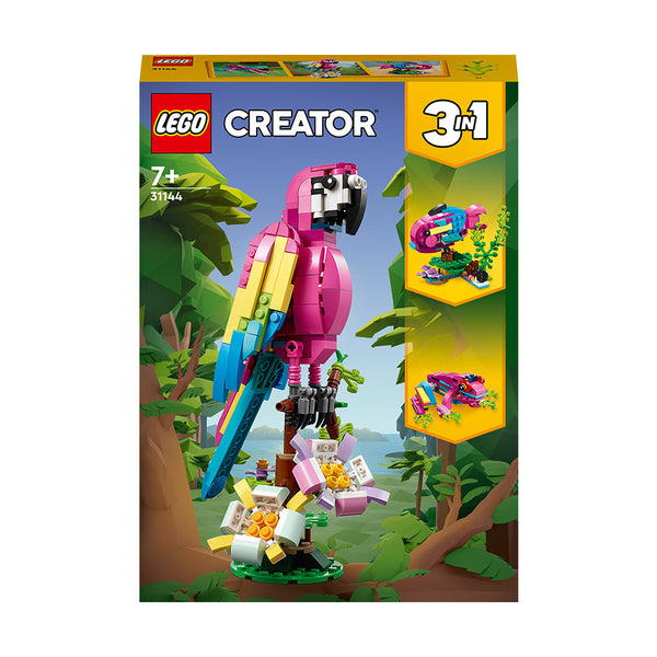 - 3in1 exotic animal toys – Kids aged 7+ can step into a rainforest with the LEGO® Creator 3in1 Exotic Pink Parrot (31144) playset, featuring a parrot, a fish and a frog