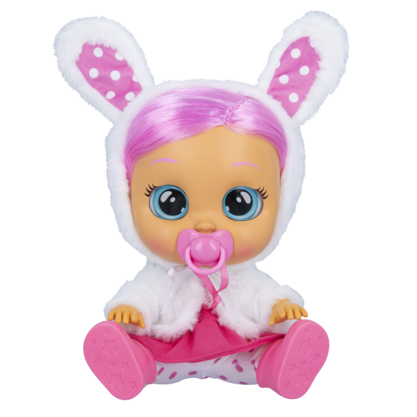 Meet the new Cry Babies Coney, now with rooted hair, glass eyes, softer and improved head,  lighter weight and, for the first time, she wears dressy clothes! As all Cry Babies, she cries real tears and makes baby sounds without her dummy!