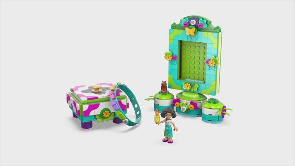 - LEGO® picture frame – The buildable set includes a small jewelry box, photo frame with stand and extra clips, wearable bracelet, plus a Mirabel LEGO ǀ Disney Encanto mini-doll figure