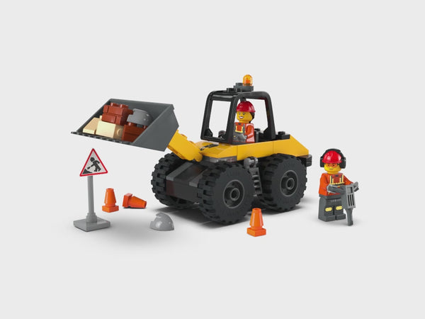 • What’s in the box? – This construction site toy includes a buildable toy wheel loader, driver and worker minifigures, a roadwork sign, traffic cones and a toy jackhammer
