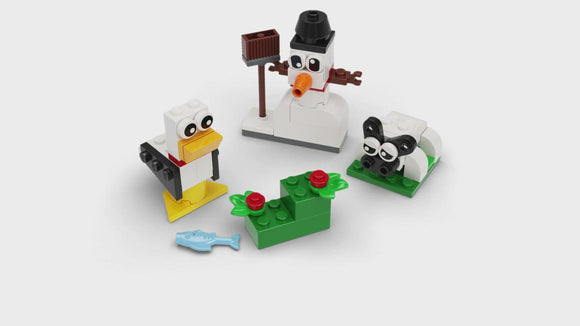 The LEGO® Classic Creative White Bricks (11012) playset is bursting with ideas and inspiration to unlock kids’ creative potential. Little builders aged 4 and up will love the 3 easy-to-build LEGO toy ideas. There’s a snowman with a broom, a sheep with a flower field and a seagull with a fish. And the creative fun continues as kids mix the bricks to modify the models and construct creations of their own.