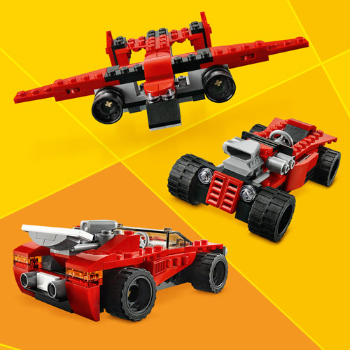 - Any fan of creative building will love this awesome set. The sports car with intake valve and spoiler, thrilling hot rod and fun plane models work as a great anytime gift for boys and girls aged 6+.