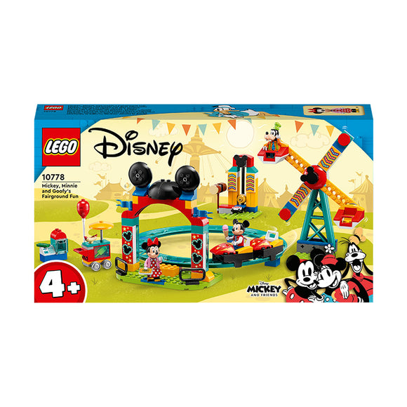 Adventure awaits kids aged 4 and over in this LEGO® ǀ Disney Mickey and Friends – Mickey, Minnie and Goofy’s Funfair Fun (10778) set, featuring 3 amusements, 2 small builds, different accessories and 3 minifigures. Kids can have loads of fun building and exploring the funfair while they boost their creativity and imaginations.