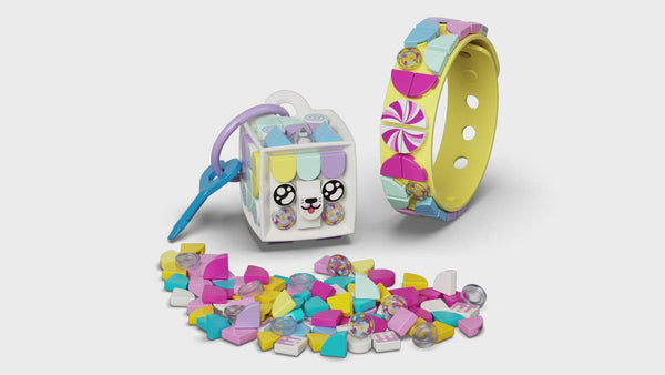 - Design, wear, tag, share – Treat an arts-and-crafts fan with this LEGO® DOTS Candy Kitty Bracelet & Bag Tag (41944) craft kit. Start the creative fun by opening the bag