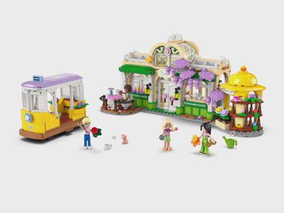 • A building kit blooming with friendship – Let kids’ imaginations grow with the LEGO® Friends Plant Café & Flower Shop for girls and boys, with a flower-shop-and-café scene and a streetcar toy