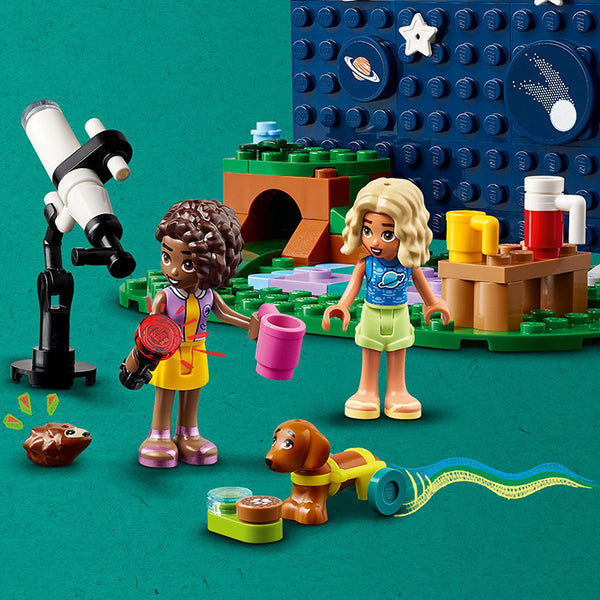 Kids who love adventure toys have lots to discover with this LEGO® Friends Stargazing Camping Vehicle (42603) playset for girls, boys and kids aged 7+. The set includes a buildable toy telescope, a 4x4 vehicle with camping trailer and self-folding tent, 2 mini-dolls, a dog figure and a hedgehog figure.