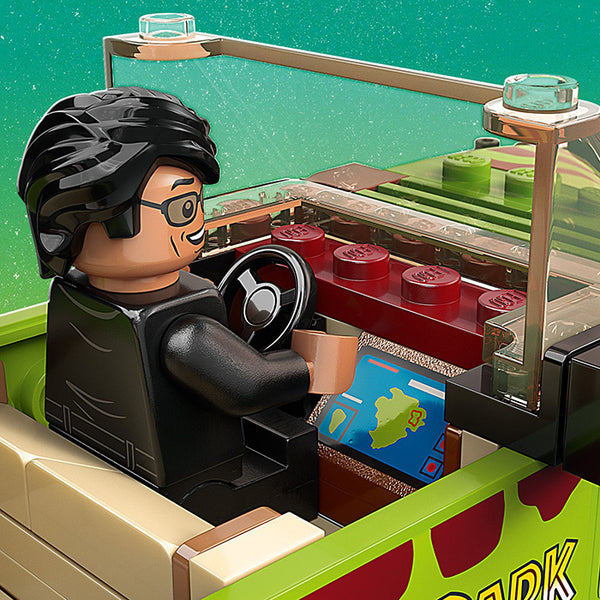 - Ford Explorer – The toy vehicle is packed with authentic details of the off-roader in Jurassic Park and has space inside for both minifigures and an onboard navigation system element