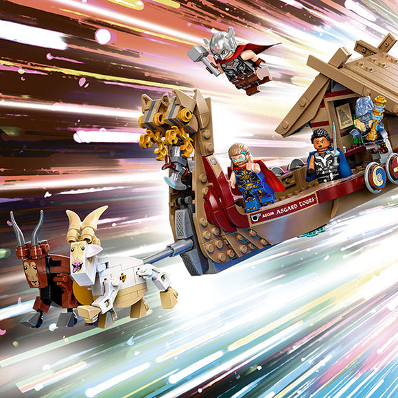 A Viking ship containing iconic characters from Marvel Studios’ Thor: Love and Thunder movie makes LEGO® Marvel The Goat Boat (76208) an ideal gift for kids aged 8 and up.