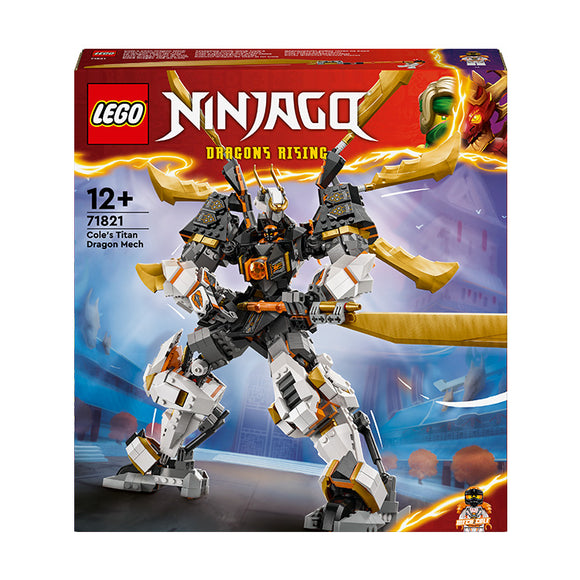 Cole’s Titan Dragon Mech (71821) adventure toy lets boys and girls aged 12+ play out action scenes from season 2 of the NINJAGO® Dragons Rising TV show. This is the biggest-ever NINJAGO titan mech and features posable arms, legs, head, body, rotation points and joints so kids can place it into battle stances, a pair of posable dragon wings and a large sword.