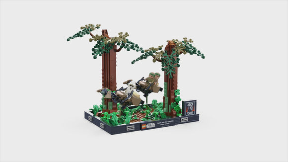 - Detailed Endor Speeder Chase Diorama (75353) – Create a dynamic LEGO® brick-built snapshot of the iconic speeder chase through the forests of Endor from Star Wars: Return of the Jedi