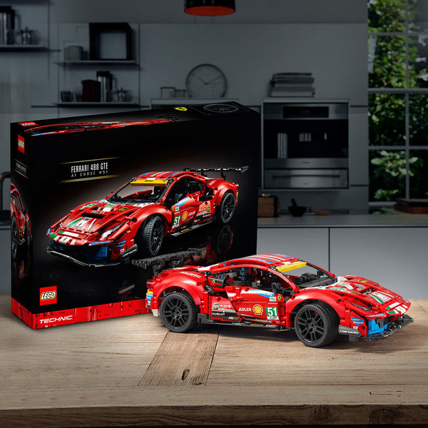 - With original race stickers and a faithful color scheme, the LEGO® Technic™ Ferrari 488 GTE “AF Corse #51” (42125) will take pride of place in the home or office of any motorsport fan.