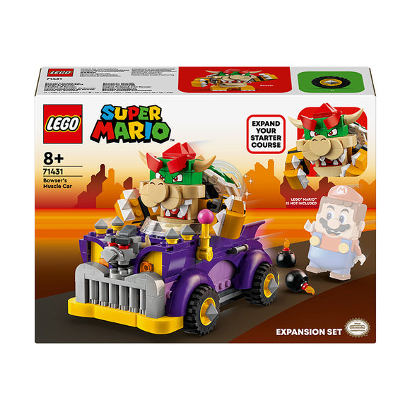 Drive and role-play with Bowser’s Muscle Car Expansion Set (71431). This LEGO® Super Mario™ collectible toy car for ages 8 and over has lots of playful features including a lever that makes the bonnet mascot move or trigger other tricks. The set also includes a brick-built figure of Super Mario™ character Bowser with an Action Tag.