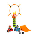 - Kids can activate the flywheel stunt bikes and launch from the ramp to soar through the ring of fire, then lengthen the jump and increase the height of the ring to increase the difficulty!