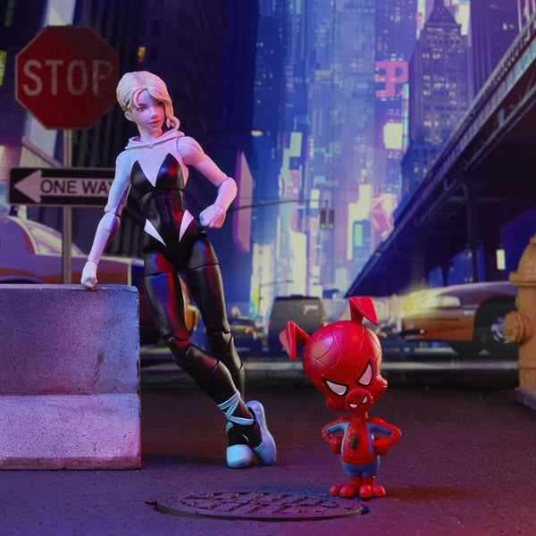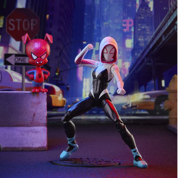 MARVEL MOVIE-INSPIRED DESIGN: This Spider-Man: Into the Spider-Verse Gwen Stacy 6-inch scale figure comes with a Spider-Ham mini-figure, and 3 accessories, and features premium design, detail, and articulation for posing and display in a Marvel collection.