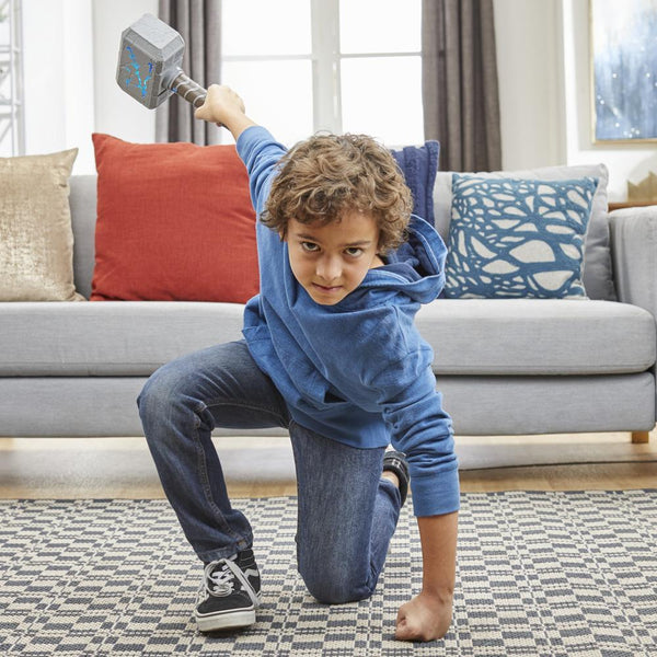 •UNLOCK SECRET FX POWER: Kids can prove they’re worthy to wield Mjolnir by sliding their thumb over the sensor in the electronic hammer’s handle to unlock additional lights and sound FX