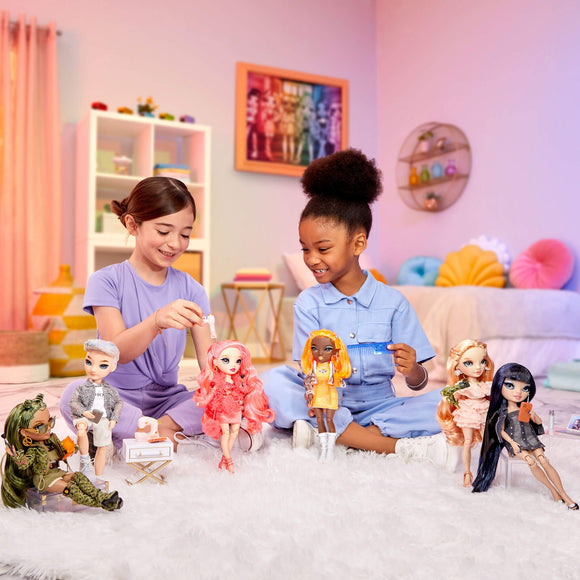 Collect all 6 Rainbow High Fashion Dolls: Victoria- Light Pink, Priscilla- Pink, Michelle- Orange, Olivia- Green, Kim- Blue, and Aidan- Purple